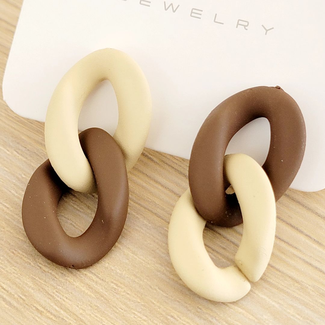 Colgantes gota casuales en tendencia, elaborados en acrílico en tonos marrón.