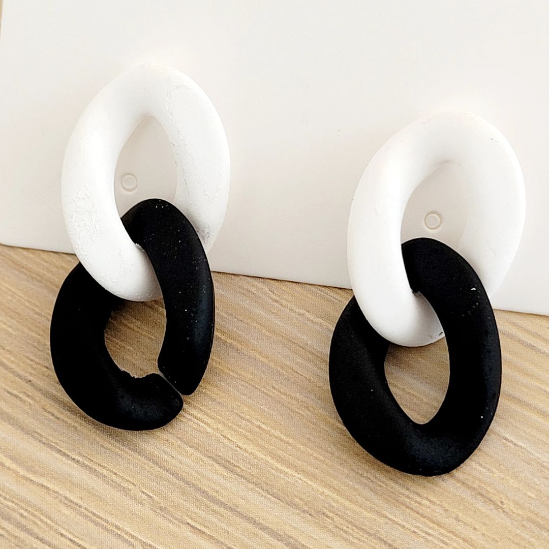 Colgantes gota casuales en tendencia, elaborados en acrílico en tonos negro y blanco.