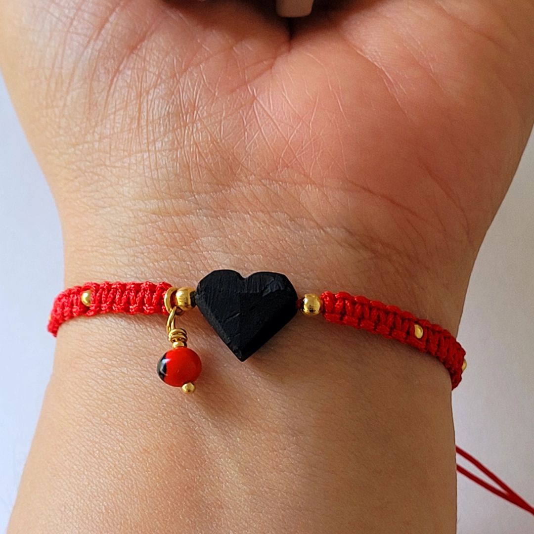 Pulsera ajustable, elaborada con Azabache, peonia y detalles en baño de oro, 100% hecho a mano.
