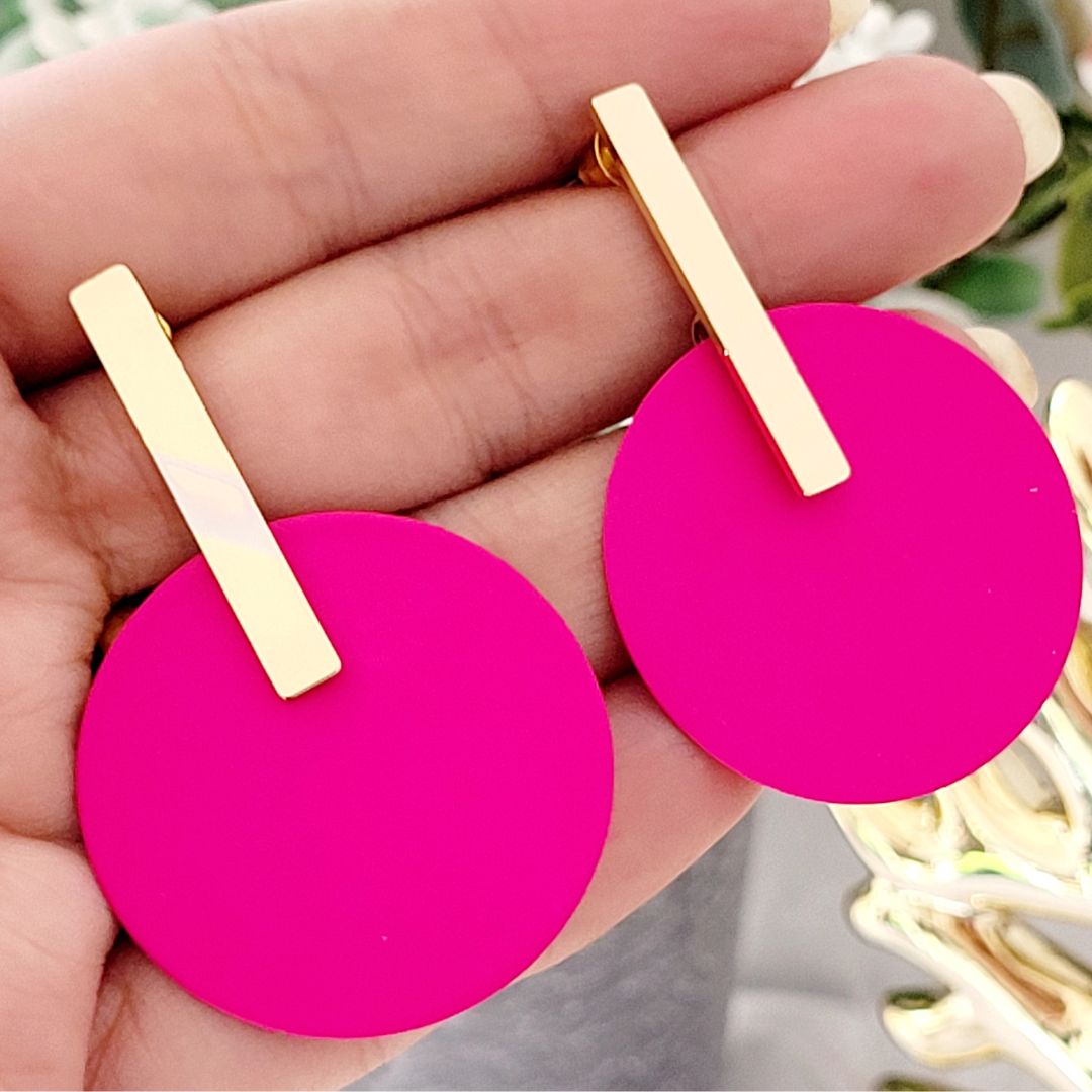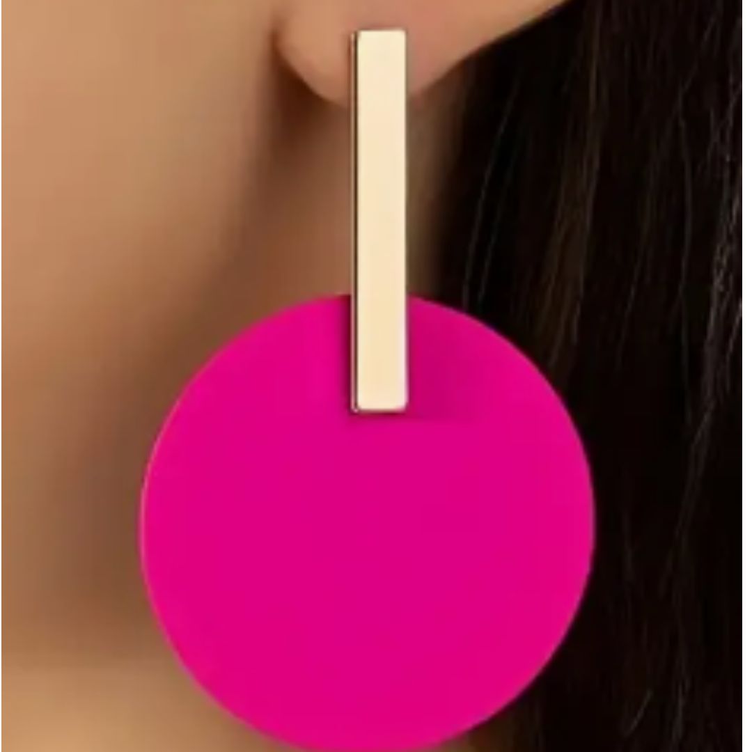 Elegantes aros chic en color fuscia, colgante de 2 Piezas.
