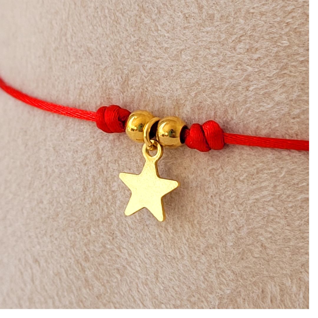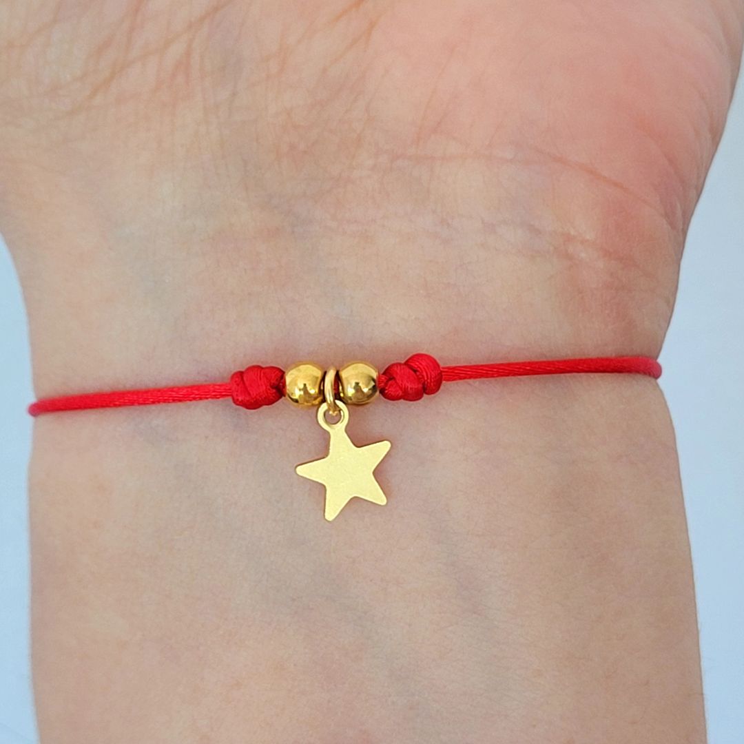 Elegante y minimalista pulsera ajustable en hilo rojo, (puedes solicitarla en otro color) los detalles son en baño de oro y acero inoxidable.
