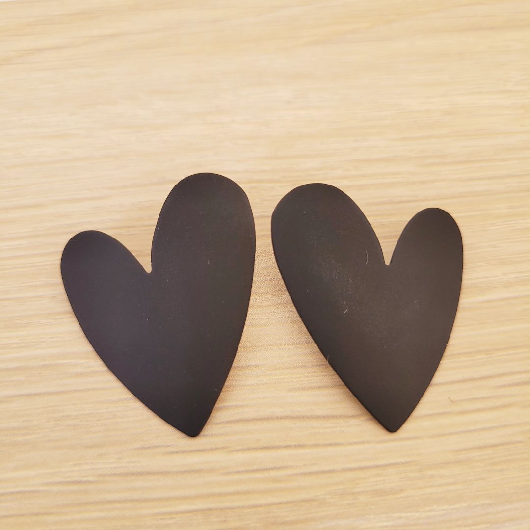 Aros de diseño elegante en forma de corazón, de color negro intenso.