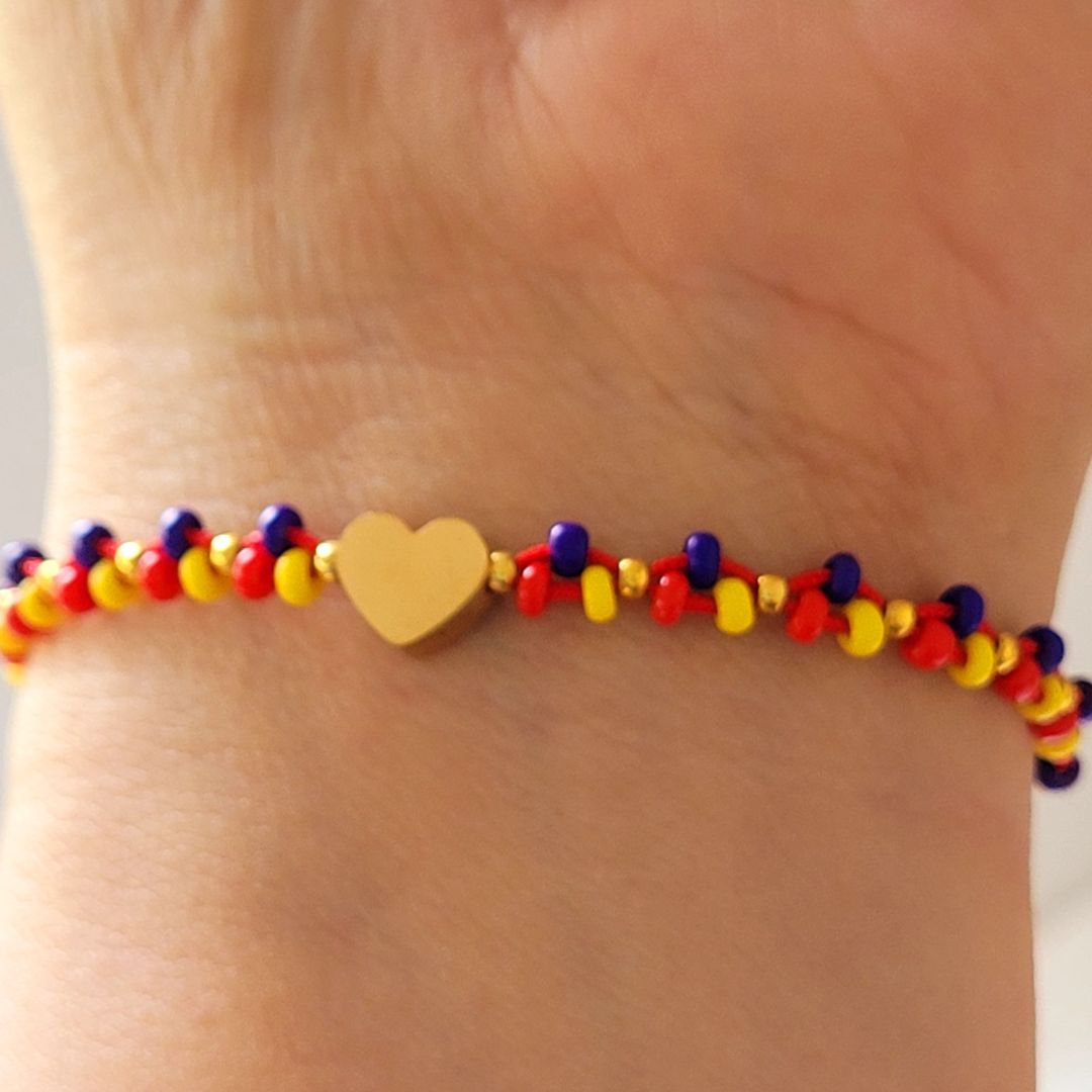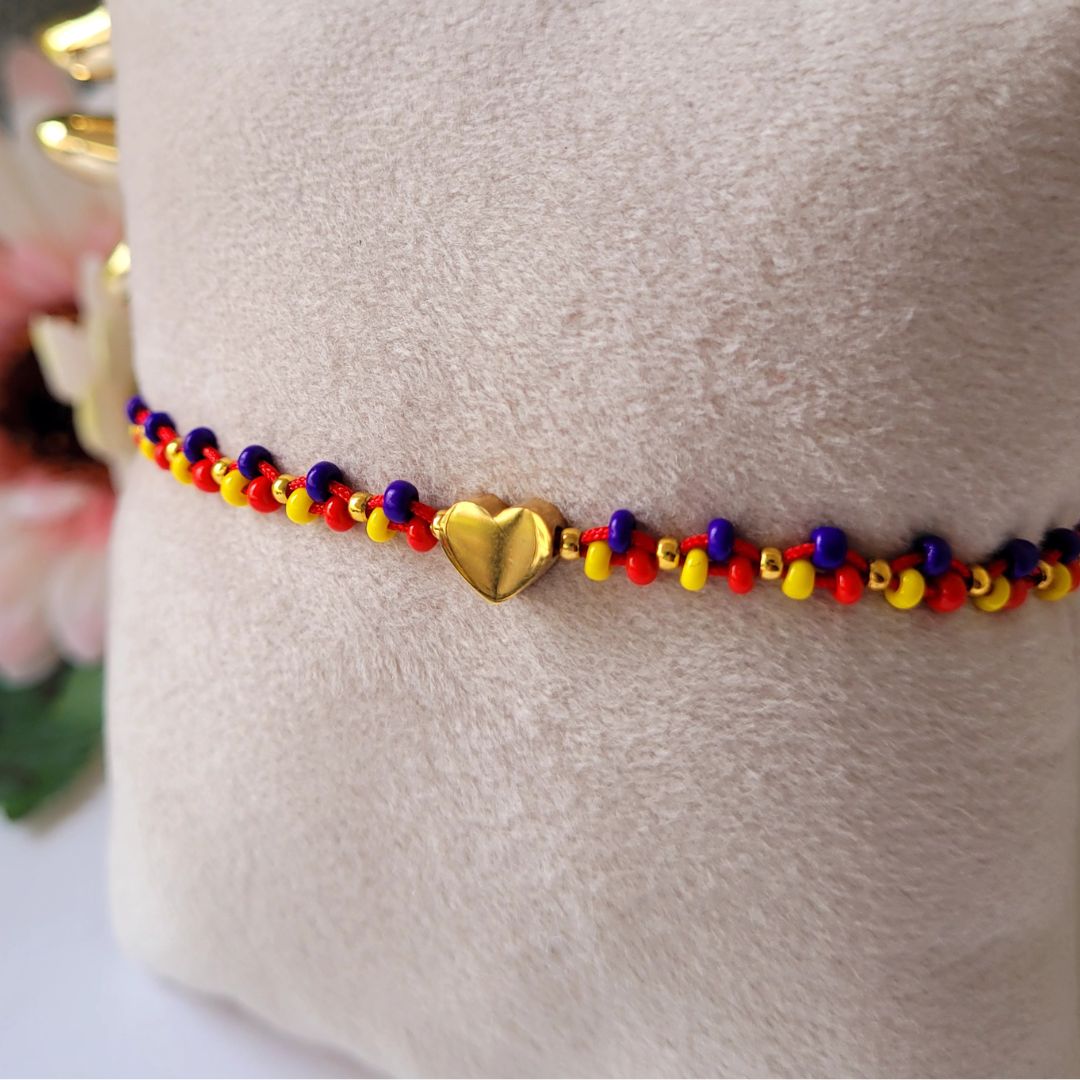Delicada pulsera ajustable, elaborada con mostacillas, los detalles son en acero inoxidable y baño de oro 18k.
