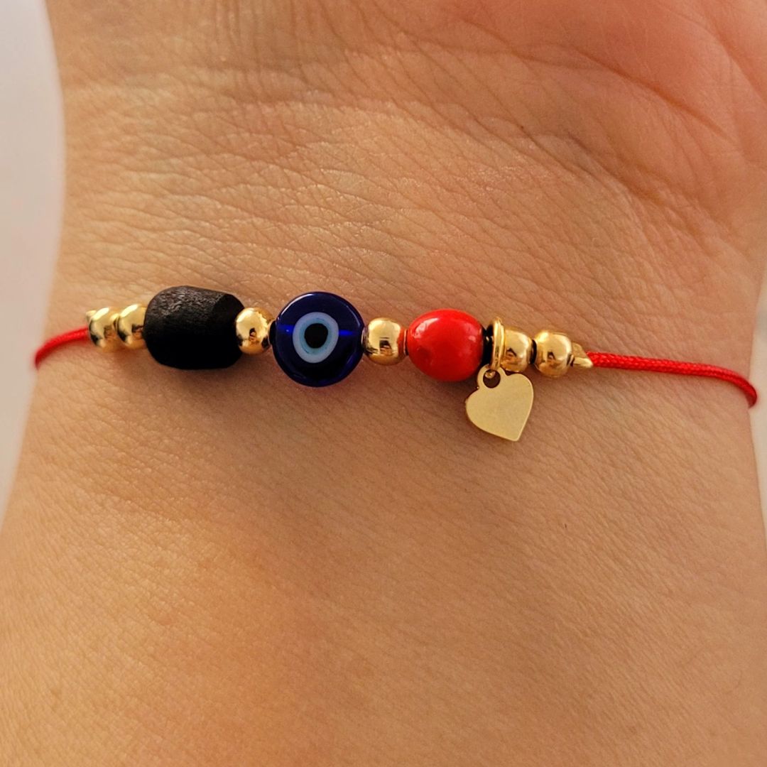 Pulsera ajustable, elaborada con Azabache, peonia y detalles en baño de oro, 100% hecho a mano.
