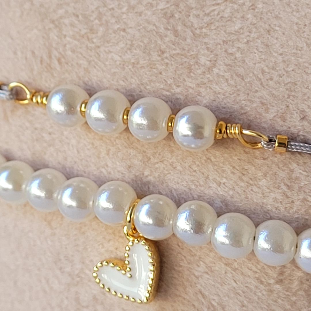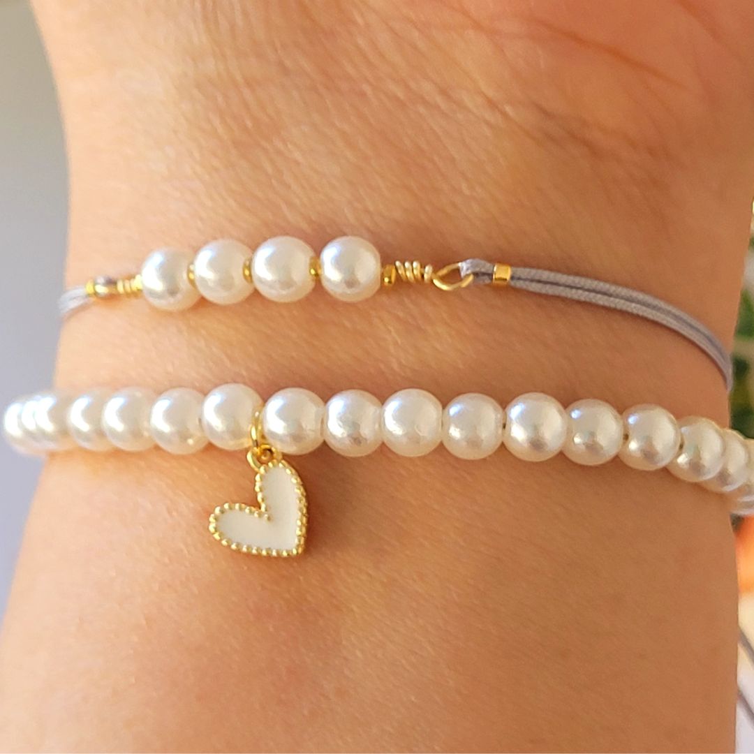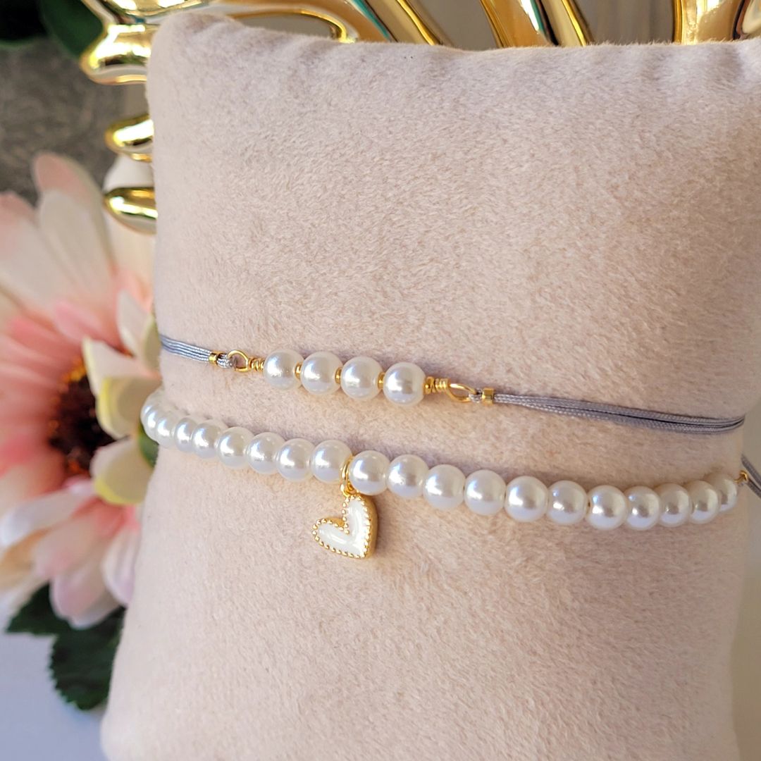 Delicado Set de pulseras de hilo ajustable, los detalles son en baño de oro 18k.