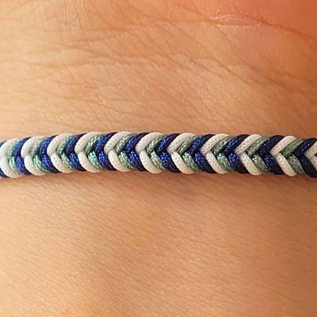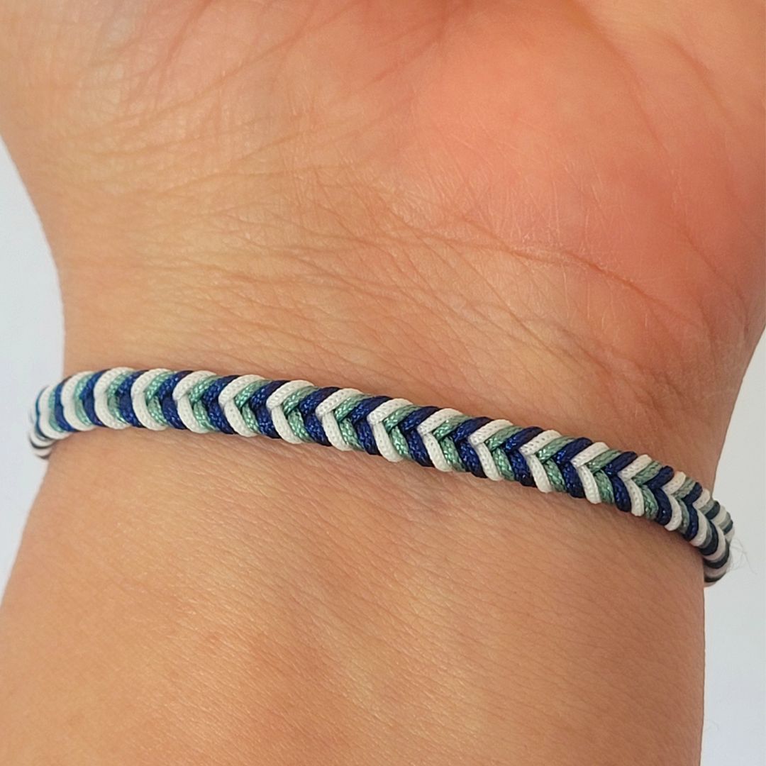 Pulsera ajustable tejida en tonos marinos, Perfecta para llevar sola o combinar con otros accesorios, realza tu estilo con un toque fresco y sofisticado.